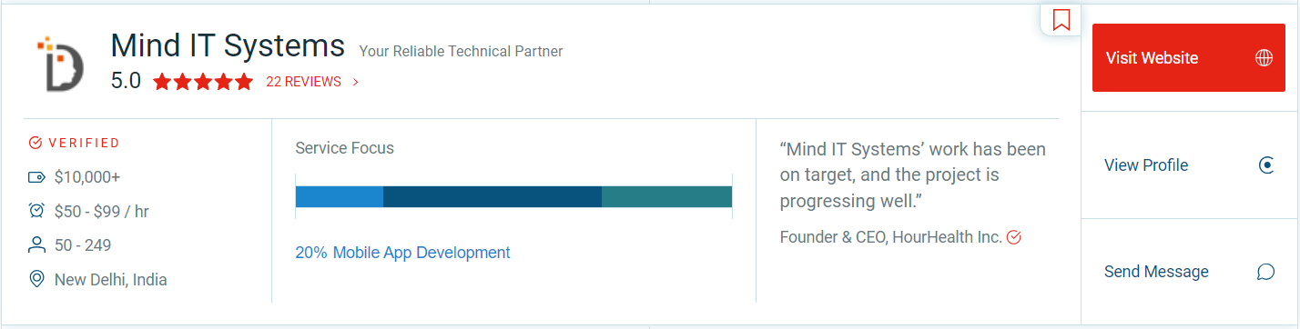 Outsourcing your project to Mind IT® – a 5/5 client-rated best mobile app development company in India can enable you to access a diverse talent pool of mobile app developers, expert designers, project managers, and business analysts who are competent to deliver innovative, customized solutions that can help to meet your unique business needs and drive growth.